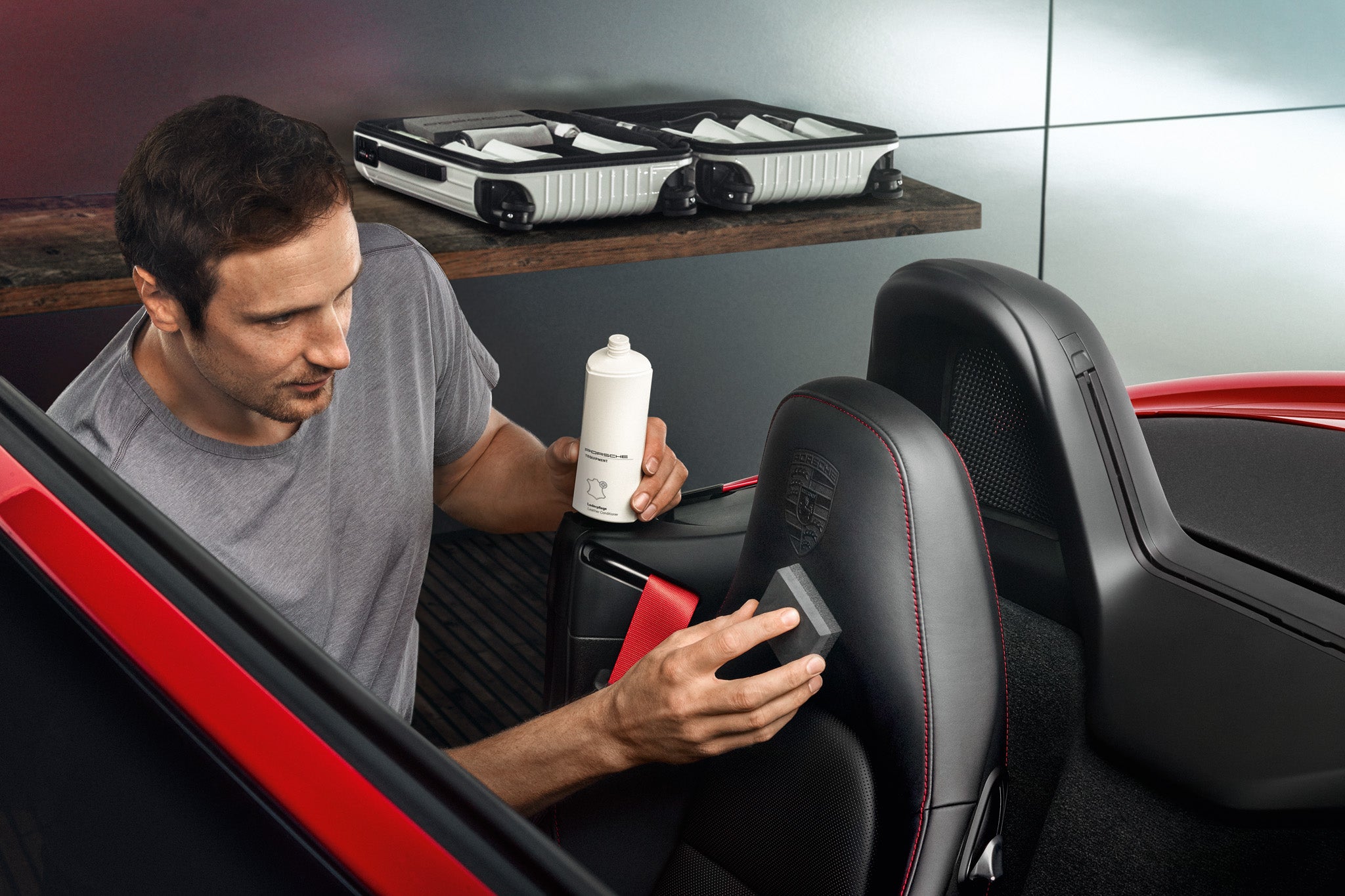 Todas as superfícies e componentes externos e internos passam por um processo de limpeza e proteção, utilizando produtos específicos para cada tipo de material. Utilizamos somente os melhores produtos profissionais, internacionalmente consagrados, para cuidar do seu Porsche, com um impressionante resultado final. Um brilho profundo e um acabamento impecável para a pintura protegerão por um longo tempo* o seu Porsche contra todas as condições climáticas.